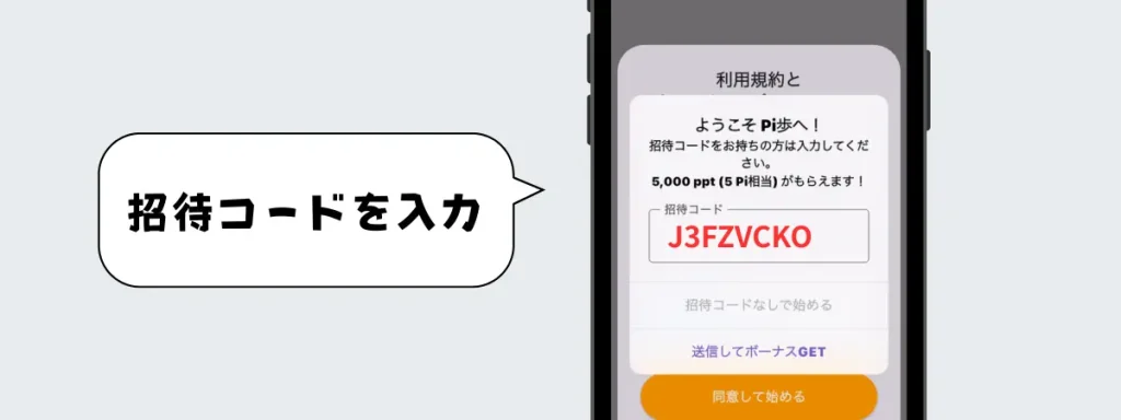 招待コードを入力することで、ボーナスポイント「5,000 ppt(5 Pi 相当)」がもらえます。